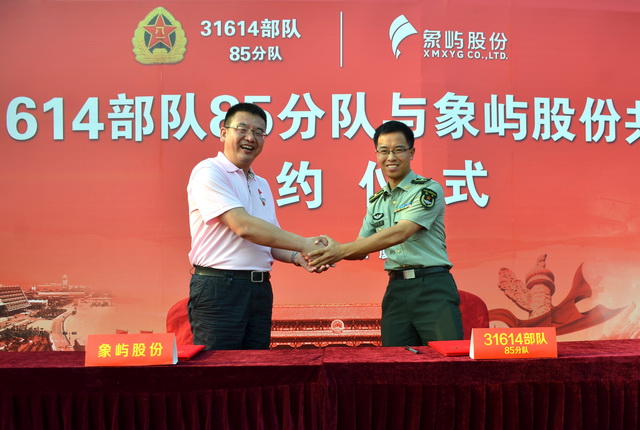 1997年,象嶼股份與原福建省軍區(qū)廈門警備區(qū)高炮營三連結成共建單位,20年來雙方積極融合,互促共進,積極擁護黨的各項領導方針和政策,共同牢記使命,勇?lián)<倚l(wèi)國和經濟建設的責任。部隊官兵剛毅自律,奮勇忠誠的精神品格,感染和激勵著象嶼人在經濟浪潮中奮勇?lián)P帆。