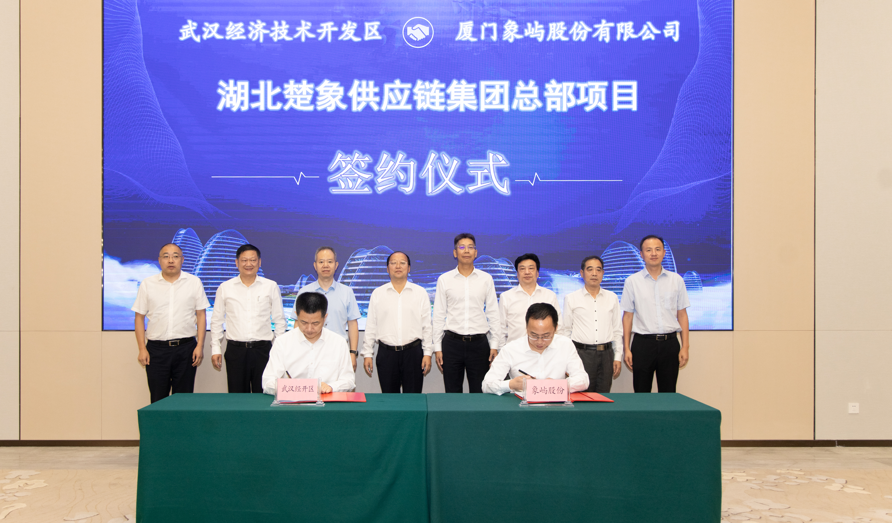 9月28日下午,廈門象嶼股份有限公司與武漢經(jīng)濟技術(shù)開發(fā)區(qū)簽署項目合作協(xié)議,湖北楚象供應(yīng)鏈集團總部項目正式落戶武漢經(jīng)開區(qū)。在象嶼股份黨委書記、總經(jīng)理齊衛(wèi)東,市委常委、武漢經(jīng)開區(qū)工委書記劉子清,湖北交通投資集團有限公司黨委書記、董事長龍傳華,黨委副書記、總經(jīng)理盧軍等共同見證下,象嶼股份黨委委員、副總經(jīng)理范承揚與武漢經(jīng)開區(qū)工委副書記、管委會主任唐超分別代表雙方簽約。